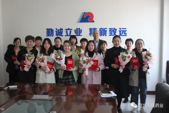 3月8日上午,河北天成藥業(yè)開展“風(fēng)華時(shí)代女性,共建美麗天成“三●八"紅旗手頒獎(jiǎng)活動(dòng)。公司黨總.支副書記、工會(huì)主席王頤為接受表彰的17位先進(jìn)個(gè)人頒發(fā)“三●八"紅旗手證書、鮮花和獎(jiǎng)品。