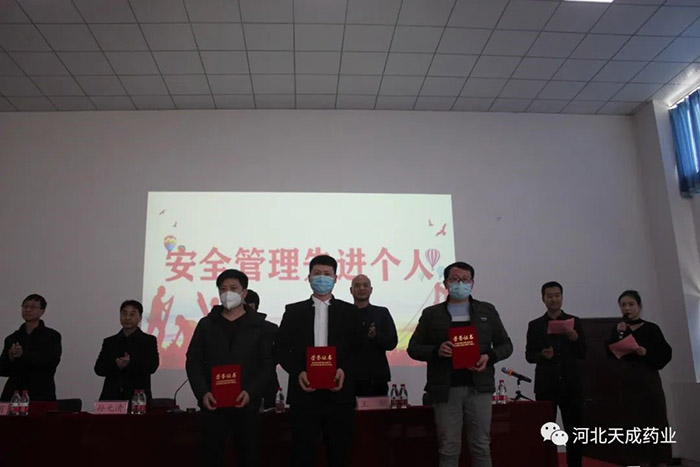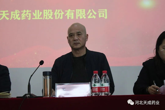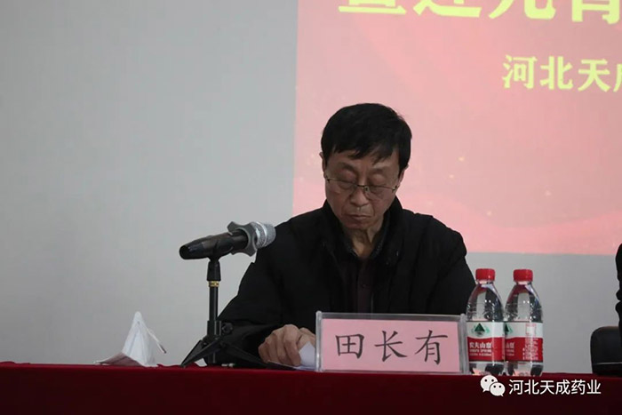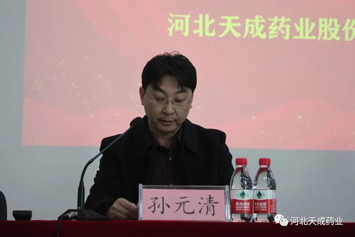 天成藥業(yè)總經(jīng)理兼渤海分公司總經(jīng)理孫元清宣讀《2022年度先進(jìn)個人賀先進(jìn)集體評選結(jié)果》