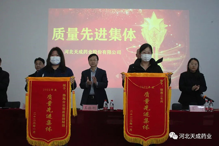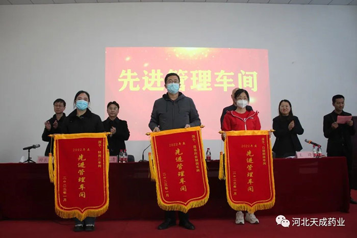 卯門生紫氣,兔歲報新春!告別難忘的2022,迎來全新的2023,回首過去的這一年奮斗路,展望天成新前程!2023年2月4日,天成藥業(yè)2022年度表彰大會暨迎元宵節(jié)文藝匯演,在三分廠活動室隆重舉行!