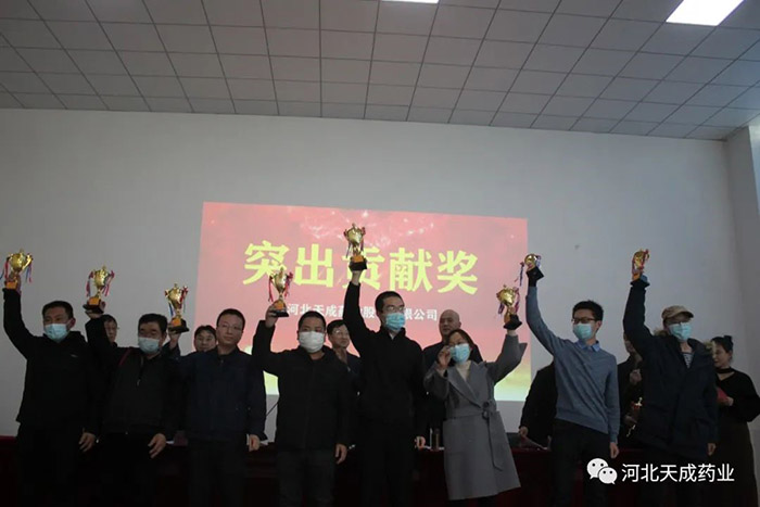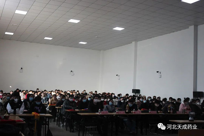 公司董事長王振剛,公司董事、常務(wù)副總經(jīng)理王顥,公司董事、天成藥業(yè)總經(jīng)理兼渤海分公司總經(jīng)理孫元清,公司董事、天成藥業(yè)副總經(jīng)理、渤海分公司常務(wù)副總經(jīng)理田長有,公司董事、天成藥業(yè)常務(wù)副總經(jīng)理王琦,及來自各分公司、各生產(chǎn)車間、各科室部門的領(lǐng)導(dǎo)和同事近200人出席了此次年會。