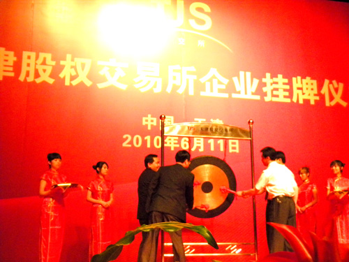 2010年6月11日上午9點29分,一個讓天成人永遠銘記的時刻,隨著四柄紅槌一起敲響天交所的開市銅鑼,河北天成藥業(yè)股份有限公司股權(quán)在天津股權(quán)交易所鳴鑼開市,當日成交338000股,成交金額118.3萬元。