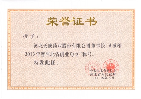 (本報(bào)訊 陳媛媛)5月份,河北省民營(yíng)經(jīng)濟(jì)發(fā)展大會(huì)在河北會(huì)堂召開(kāi),會(huì)議總結(jié)近年來(lái)民營(yíng)經(jīng)濟(jì)發(fā)展經(jīng)驗(yàn),部署了未來(lái)的工作,對(duì)2013年度河北省創(chuàng)業(yè)功臣進(jìn)行表彰。我公司董事長(zhǎng)、總經(jīng)理王振剛獲得“創(chuàng)業(yè)功臣”榮譽(yù)稱號(hào)。