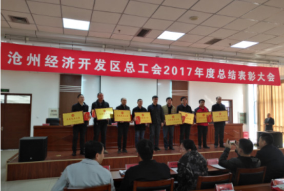 2018年3月6日上午,滄州經(jīng)濟(jì)開(kāi)發(fā)區(qū)總工會(huì)召開(kāi)2017年度模范及先進(jìn)工會(huì)組織的總結(jié)表彰大會(huì)。