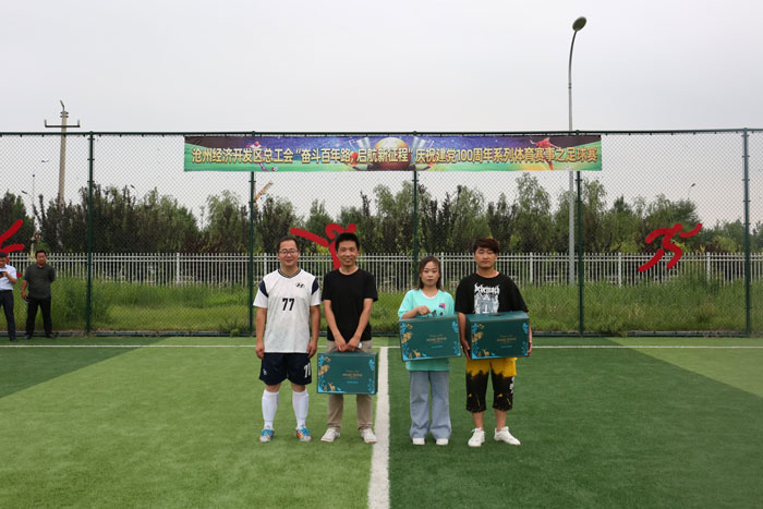 此次賽事項目設置了8人制賽、繞樁射門比賽和點球大戰(zhàn)。經(jīng)過小組賽和淘汰賽,我公司最終獲得繞樁射門比賽和點球大戰(zhàn)兩個技巧賽的冠軍,8人制賽項目季軍的成績。